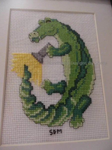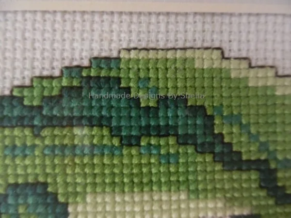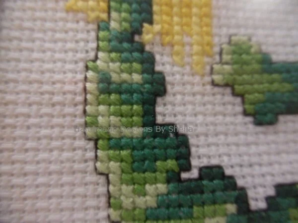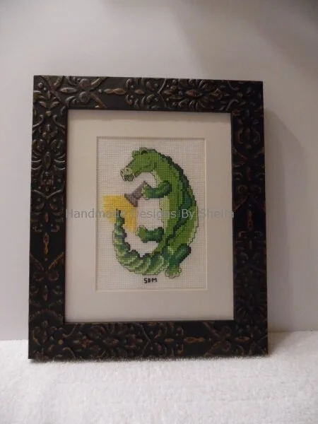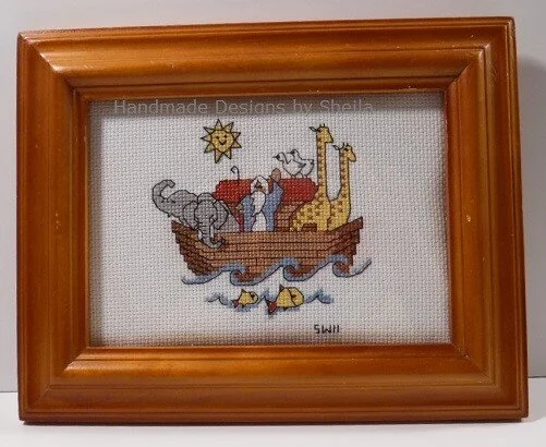 Cross-stitched by "Handmade Designs by Sheila" and design completed in 2012. It measures 11" x 14". With the frame added to the artwork, it measures approximately 18 5/8" x 15 5/8".